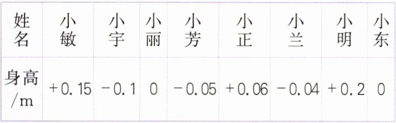 1. 某游乐场规定身高1.2 m以上(不含1.2 m),1.4 m以下(含1.4 m)的儿童可以购买半价票。小明以1.4 m为标准记录了本小队8名成员的身高情况: