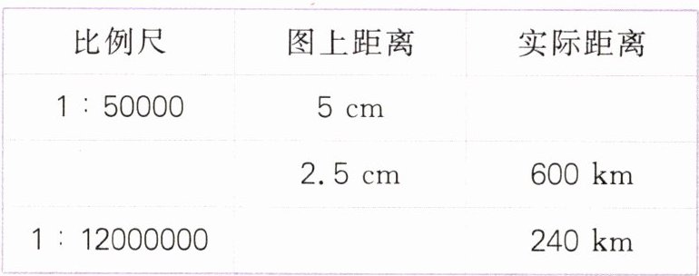 比例尺:1 : 10000 $50000\times\frac{1}{10000}=5(cm)$