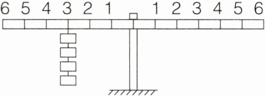 7. 如图所示,在平衡架的左侧已经挂了4个砝码,每个30 g,李明找到2个20 g的砝码,挂在右侧第( )格处,也能使平衡架平衡。