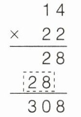 (2)丁丁读一本书,每天读 14 页,22 天读了多少页?如图竖式中,方框里的数表示 ( )