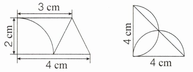 $(3 + 4)\times2\div2-3.14\times2^{2}\times\frac{1}{4}-(4 - 2)\times2\div2 = 1.86(cm^{2})$@@ $[3.14\times(4\div2)^{2}-4\times(4\div2)]\div2 = 2.28(cm^{2})$