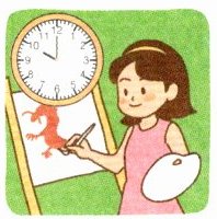 What time is it? It's 6 o'clock. It's time to get up.@@What time is it? It's 10 o'clock. It's time for art class.