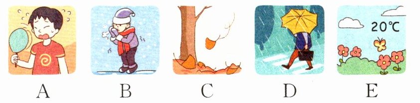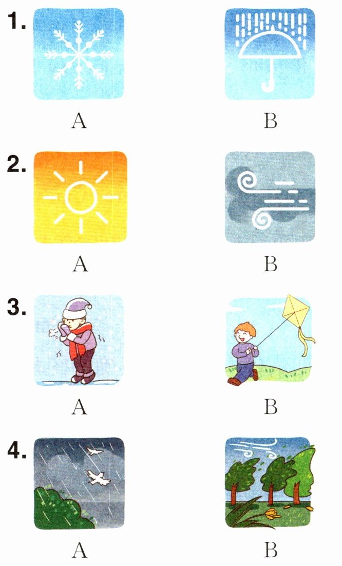( )2. A. It's snowy. B. I can swim. C. Thank you.