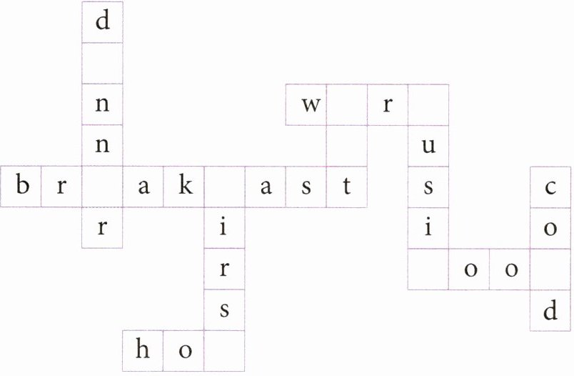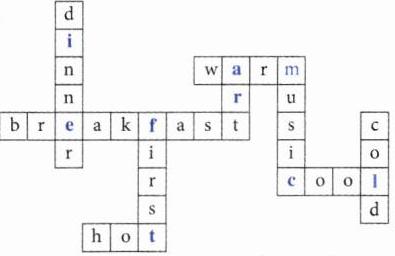 1. breakfast 2. library 3. hot 4. teachers’ 5. art