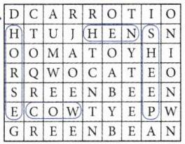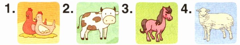 一、在表格中圈出图片中的四种动物单词,并写到相应图片下面。