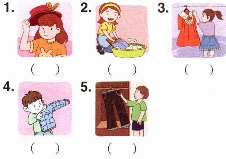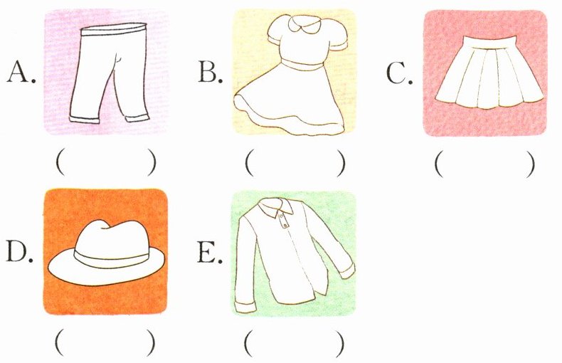 四、读短文,给衣服写出颜色,并给每位小朋友选择相应的礼物。