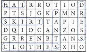 一、在表格中圈出图片中的物品单词,并规范书写。