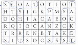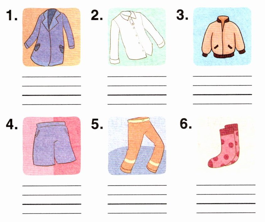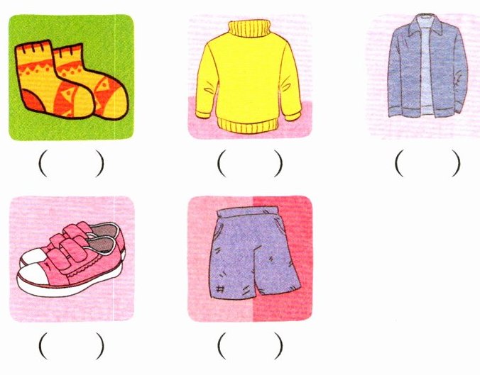 五、在表格中圈出图片中的服饰单词,并将其写到四线三格中。