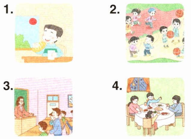 二、Amy和Zhang Peng正在谈论上午的时间安排,请根据情境及时间顺序给下列句子排序。(数字1已给出)