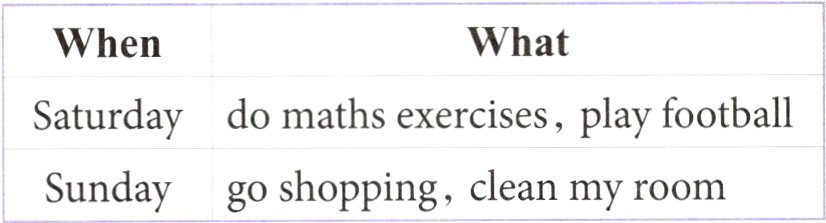 Saturday: do math exercises. There will be a math test next week. Play football.