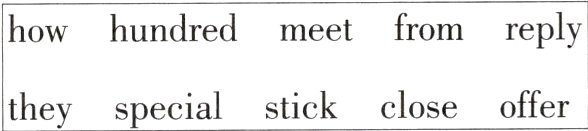 一、1. special 2. hundreds 3. from 4. them 5. met 6. reply 7. How 8. offer 9. closer 10. stick