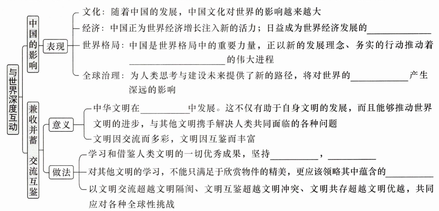 答案: 引擎与稳定器 构建人类命运共同体 和平与发展 交流互鉴 以我为主 兼收并蓄 人文精神