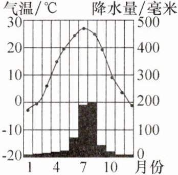 这是一处宅院,曾居住过24位帝王;这是一座宫城,汇集了四方物华天宝;这也是一个符号,承载了中国悠悠千年的文化精髓。这就是北京故宫。下图为北京市气温曲线和降水量柱状图。读图,完成5~6题。