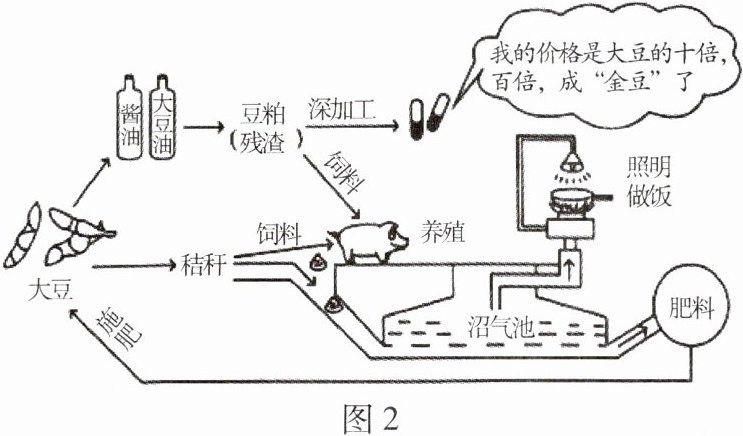 黑龙江省作为我国大豆主产区之一,积极发展大豆深加工产业。图2为大豆加工流程示意图。