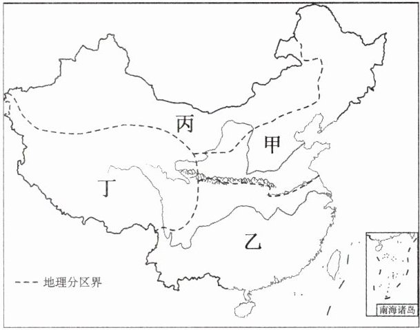 (贺州中考)我国幅员辽阔,自然环境复杂多样,形成了各具特色的地理区域。读我国四大地理区域图,完成3~4题。