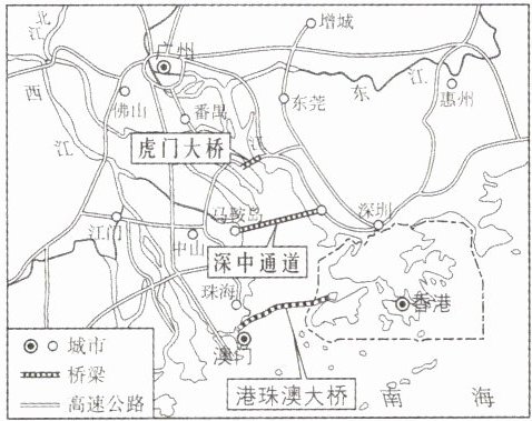 (云南中考)深中通道连接深圳市和中山市,2016年12月29日开工建设,计划2024年全线通车,届时珠江两岸可以实现半小时对接。读“珠江三角洲及港澳地区示意图”,完成2~4题。