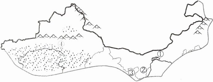 (3)灌溉农业区④是 ,其灌溉水源来自 山脉的冰雪融水和地下水。该农业区内著名的瓜果有 ,其瓜果特别甜的原因是什么?
