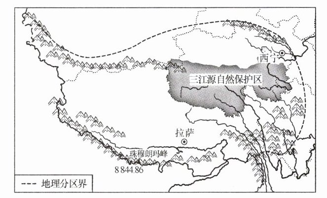 三江源国家公园于2020年正式设立,三江源被誉为“中华水塔”。读图,完成1~2题。