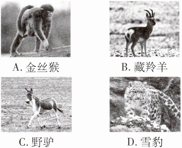 11. 下列珍稀动物不可能出现在三江源地区看见的是 ( )