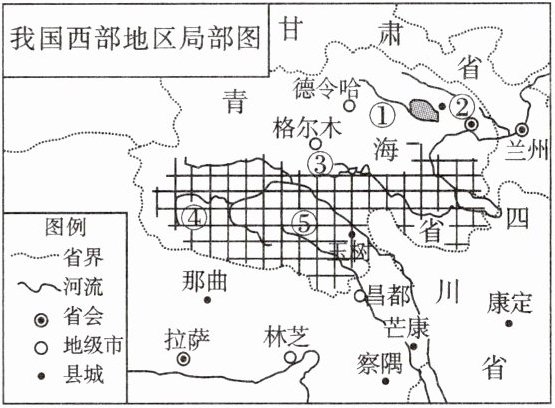 (3)三江源地区被誉为“中华水塔”。众多大江大河均发源于此,为保护河流源头,国家建立了三江源自然保护区(图中方格状阴影区)。三江源中③是_______的源头,④是_______的源头,⑤是________的源头。(填河流名称)