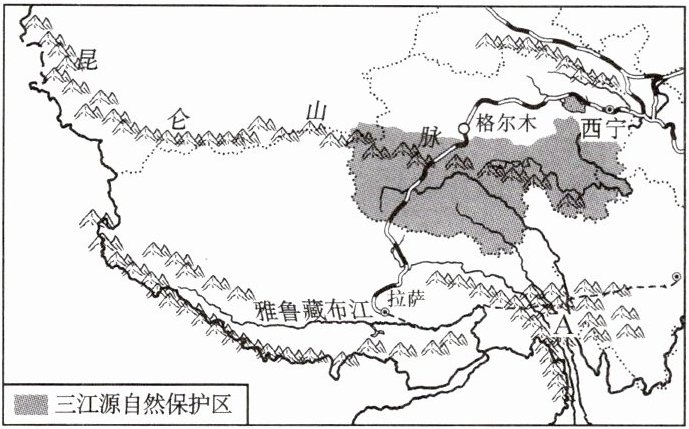 (4)①海拔高;②气候寒冷;③生态环境脆弱;④空气稀薄;⑤冻土广布;⑥交通不便;⑦经济欠发达。