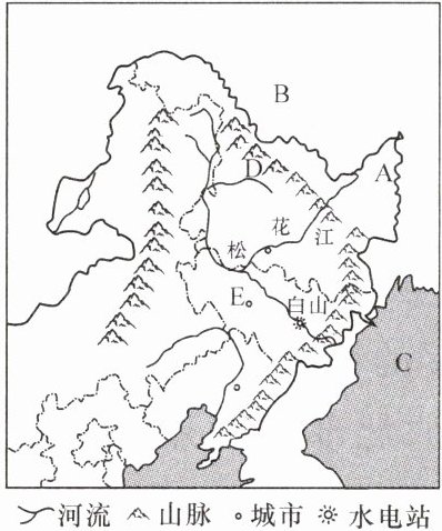 (3)图中白山水电站是东北著名的水电站,该水电站发电量最大的季节是夏季。据图分析松花江上游水能资源丰富的原因。