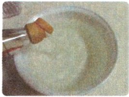 小明探究小苏打和白醋混合后的变化。他先观察了小苏打和白醋的特点,然后把小苏打和白醋混合并观察发生的现象(如右图)。