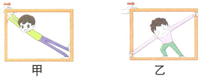 (2)为了把长方形框架加固,我们一般可以在框架中加入______,下图中的漫画人物形象地说明了斜杆在框架中的作用。图甲中漫画人物的______力阻止了框架的变形,图乙中漫画人物的______力阻止了框架的变形。