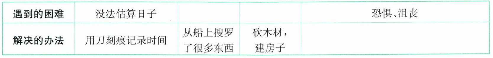 1. 思维题 根据梗概,将鲁滨逊流落荒岛时的情节用小标题的方式列出来。