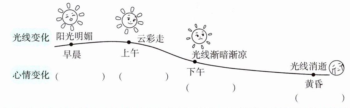 3. 把心情融入景物中表达情感。根据课文内容,梳理“我”的心情变化,选一选。(填序号)