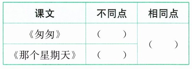 4. 语文要素 联系全文,对比《匆匆》和《那个星期天》表达情感的方式,完成表格。(填序号)