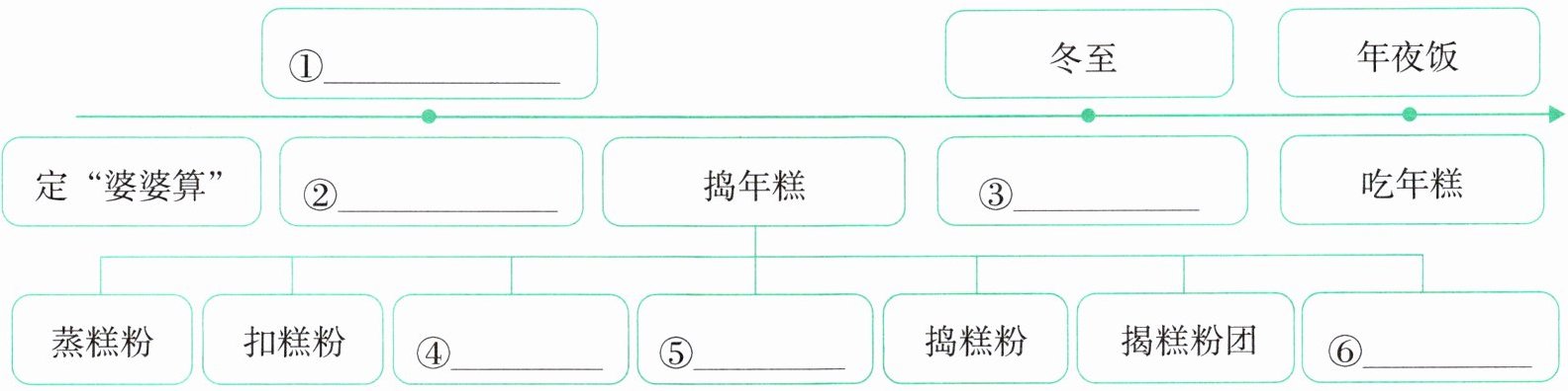 (2)语文要素 作者按________顺序介绍了自己老家过春节时的习俗,写得有详有略,其中写得最详细的是____________(时间)。这样写的好处是______________________________。