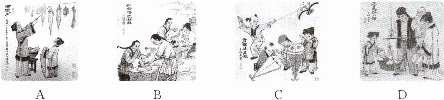 1. 图绘民俗。书画馆展出一些民俗图,下列哪幅图与短文中提及的习俗有关?( )