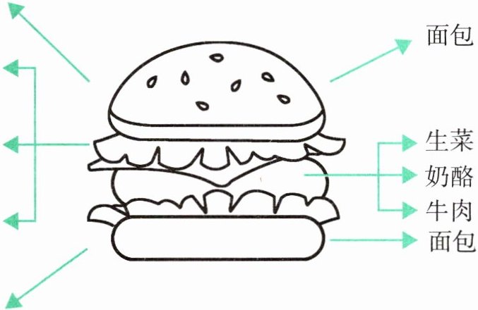[五、思维题 读课文,理清课文的脉络,填写下面有趣的“汉堡包”式的导图。(目标:505)