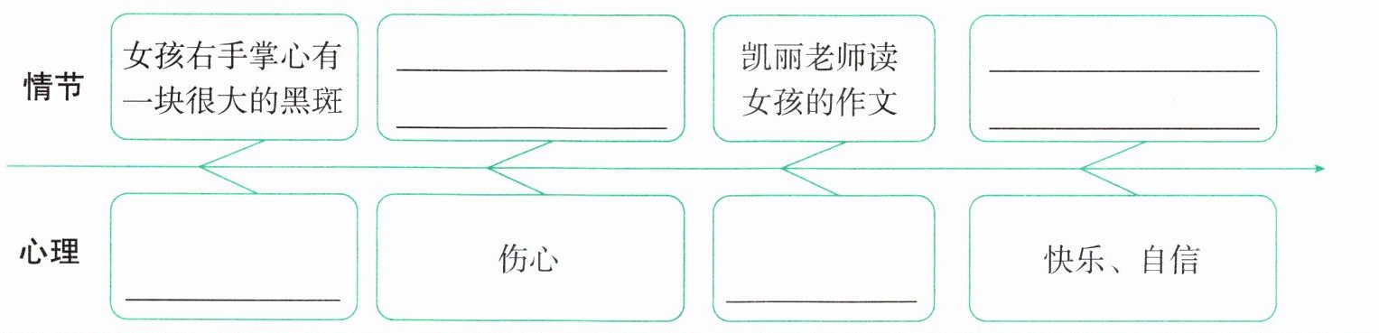 ⑥暴露在全班同学眼前的,是那块醒目的黑斑。“其实,这块黑斑是一颗痣,”凯丽老师环视了所有的同学,然后对女孩说,“它时刻提醒你要树立志向,追逐梦想。”凯丽老师握紧了女孩的右手,放到她的胸前:“你是全班最幸运的孩子,因为你掌心的痣是别人所没有的,它每天都会警醒你是一个掌心有梦想的人!”