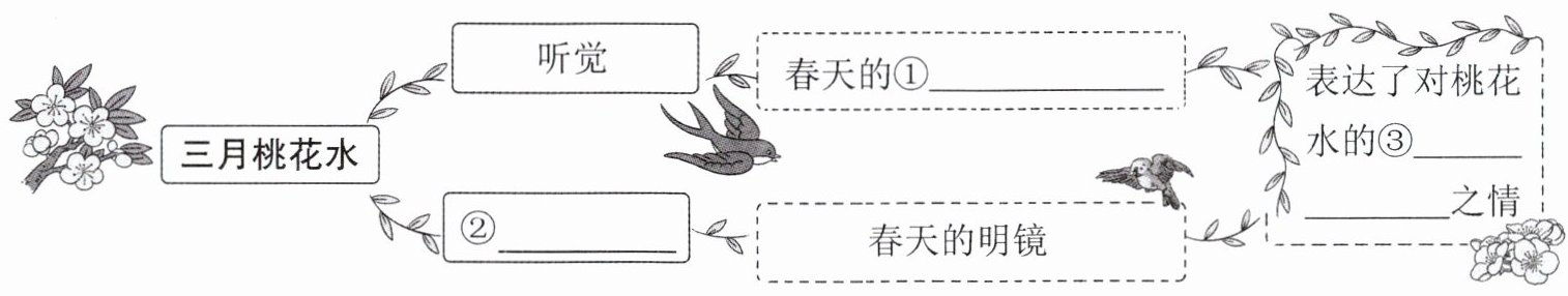 (2)“沉醉”的意思是______________________________,这句话表达了作者对三月桃花水的______________________________。