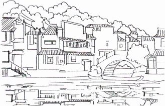 示例:一 清澈的河水,郁郁葱葱的树木,依水而建的房屋,构成了一幅静谧的水乡风景画。