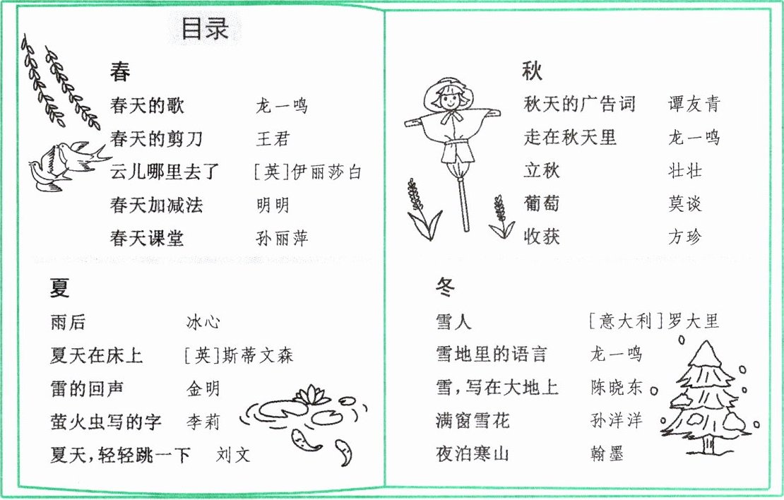 (2)我发现这本诗集是按照( )来分类的。