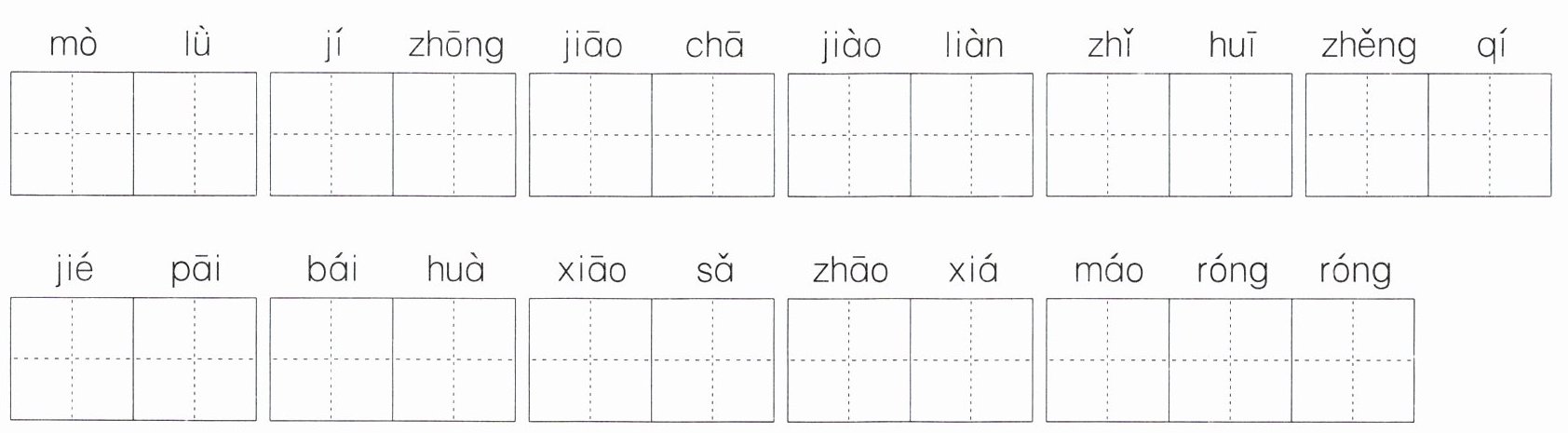 漫•步(màn mán) 拥•挤(jí jǐ) 刀叉•(cā chā) 绣•花(xiù xiù)