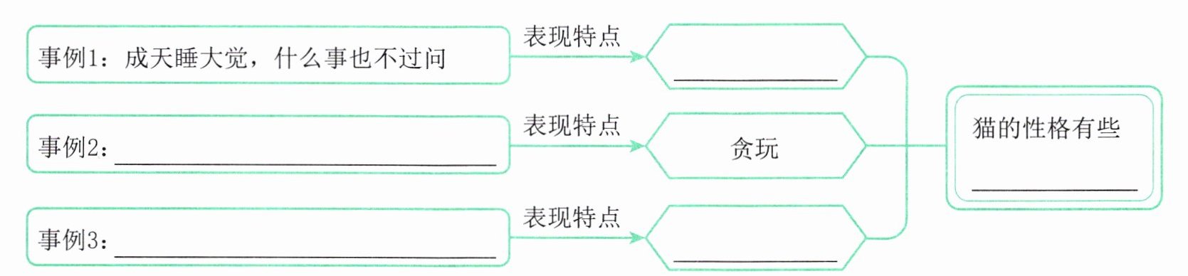 2. 文段写了哪些事例来表现猫的性格特点?填一填。