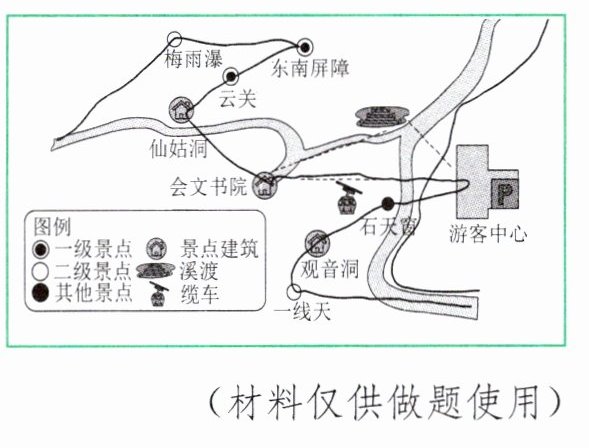 (3)从游客中心到达会文书院,可以乘坐缆车或溪渡。 ( )