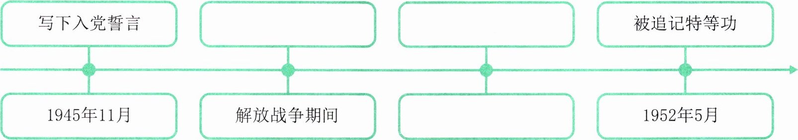 (2)这篇文章重点介绍了杨根思的哪些事?请你通读全文,整体把握文章的主要内容,然后填写下面的导图,按时间顺序进行梳理。