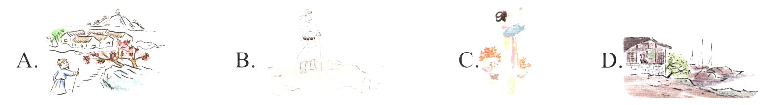 6. 下面与“遥知兄弟登高处”诗意最相符的画面是( )。