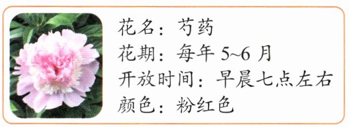 示例:早晨七点左右,芍药露出粉红色的笑脸。