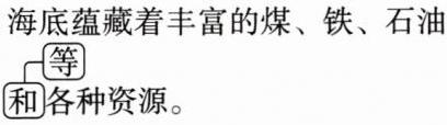 3. 海底蕴藏着丰富的煤、铁、石油和各种资源。(用修改符号修改病句)