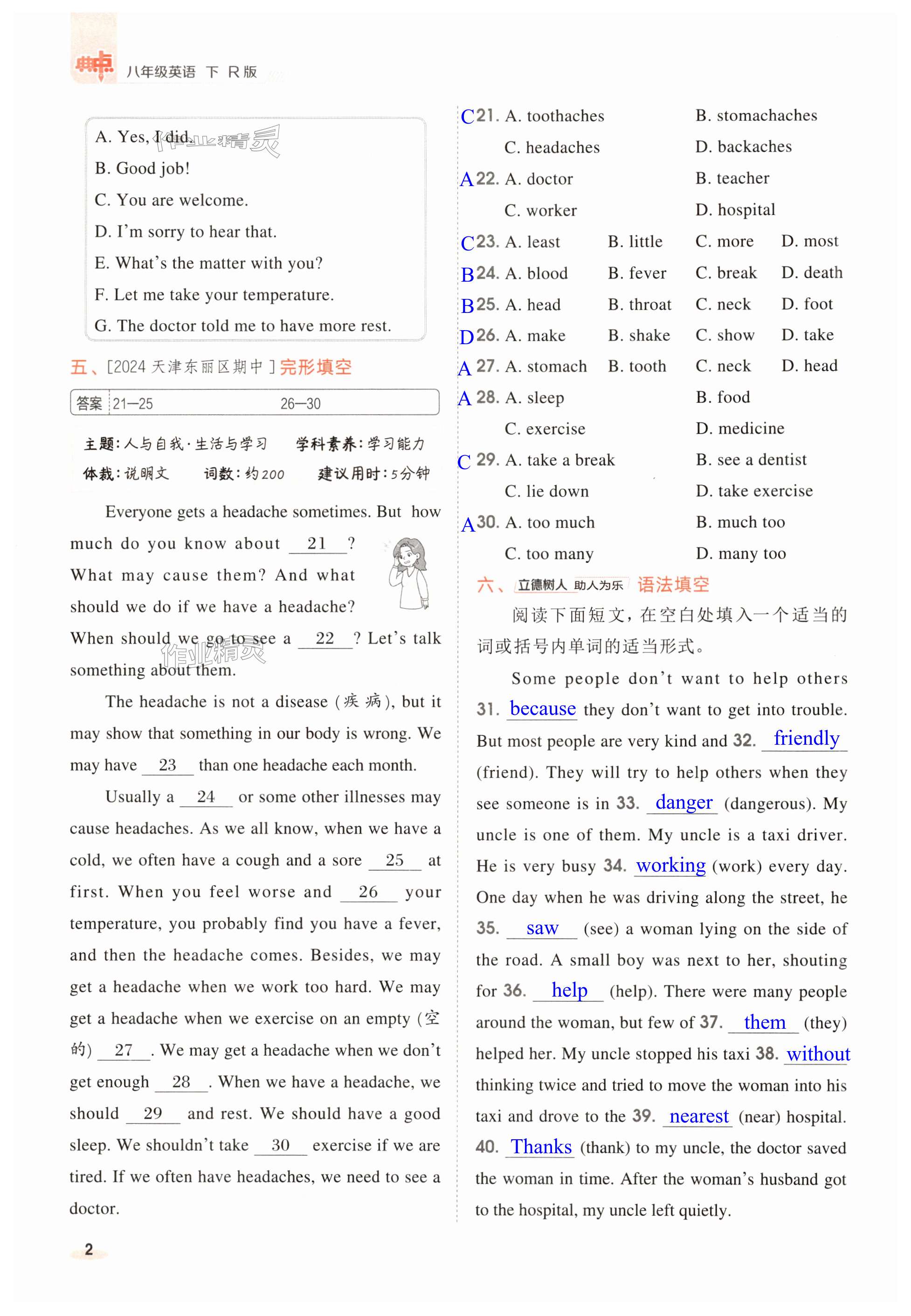 注:目前有些书本章节名称可能整理的还不是很完善,但都是按照顺序排列的,请同学们按照顺序仔细查找。练习册 2025年综合应用创新题典中点八年级英语下册人教版 答案主要是用来给同学们做完题方便对答案用的,请勿直接抄袭。