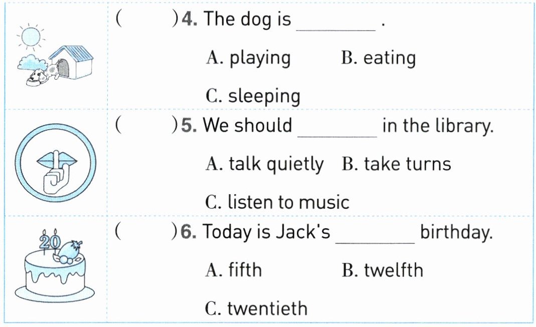 五(浙江省温州市)读句子,根据图片选择正确的选项。(6分)