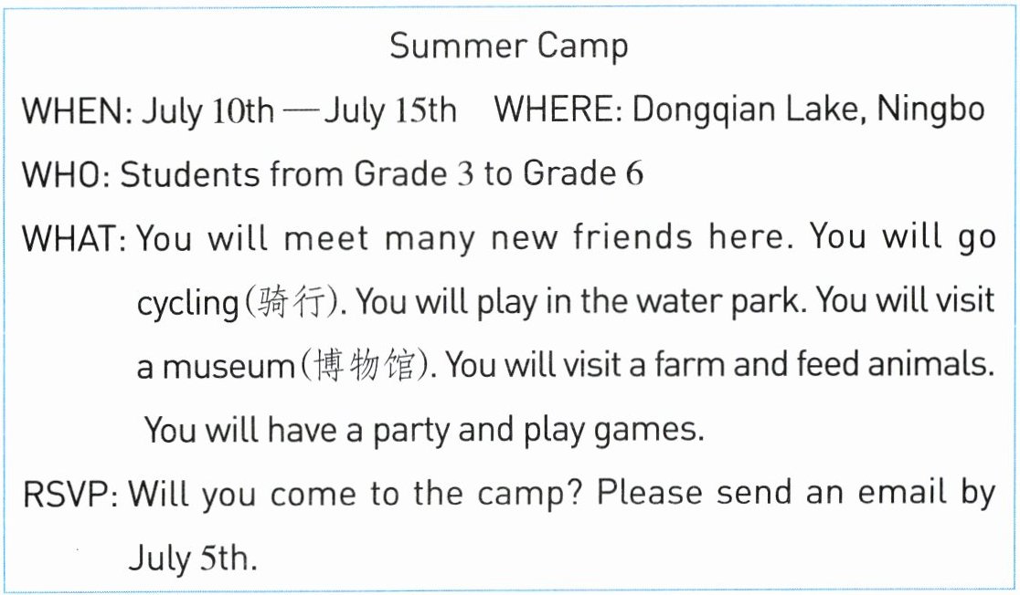( )2. Students in Grade 2 can go to the summer camp.