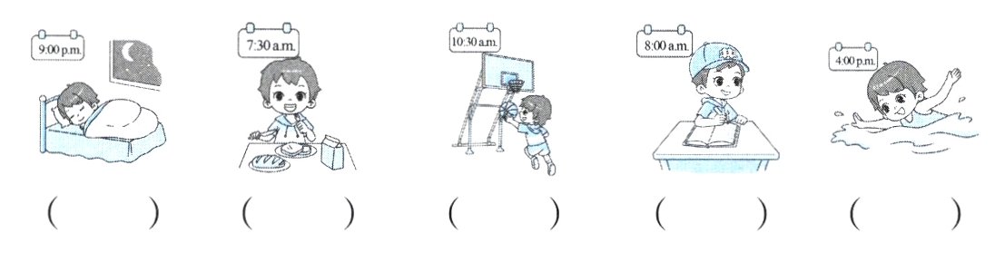 Diandian正在讲述他周六的作息。听句子,按照他讲述的顺序,用数字1~5给下列图片排序。(10分)