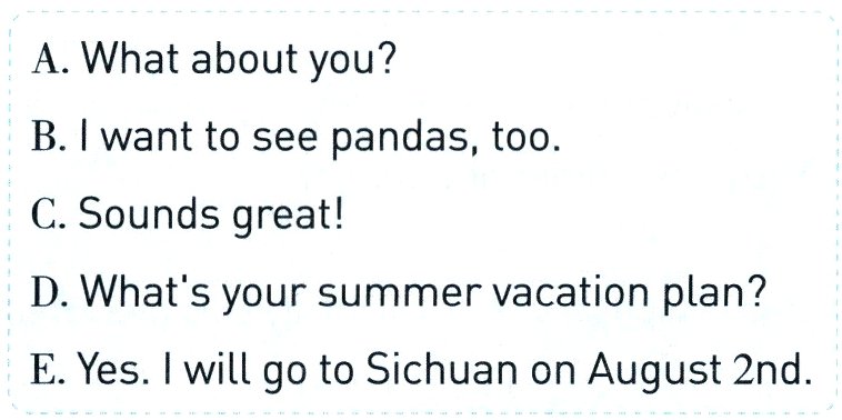 七、Huahua和Lily正在聊暑期计划。读一读,选择合适的句子补全对话。(10分)